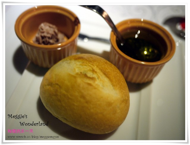 先上了法國脆皮麵包佐鵝肝慕思及油醋。
